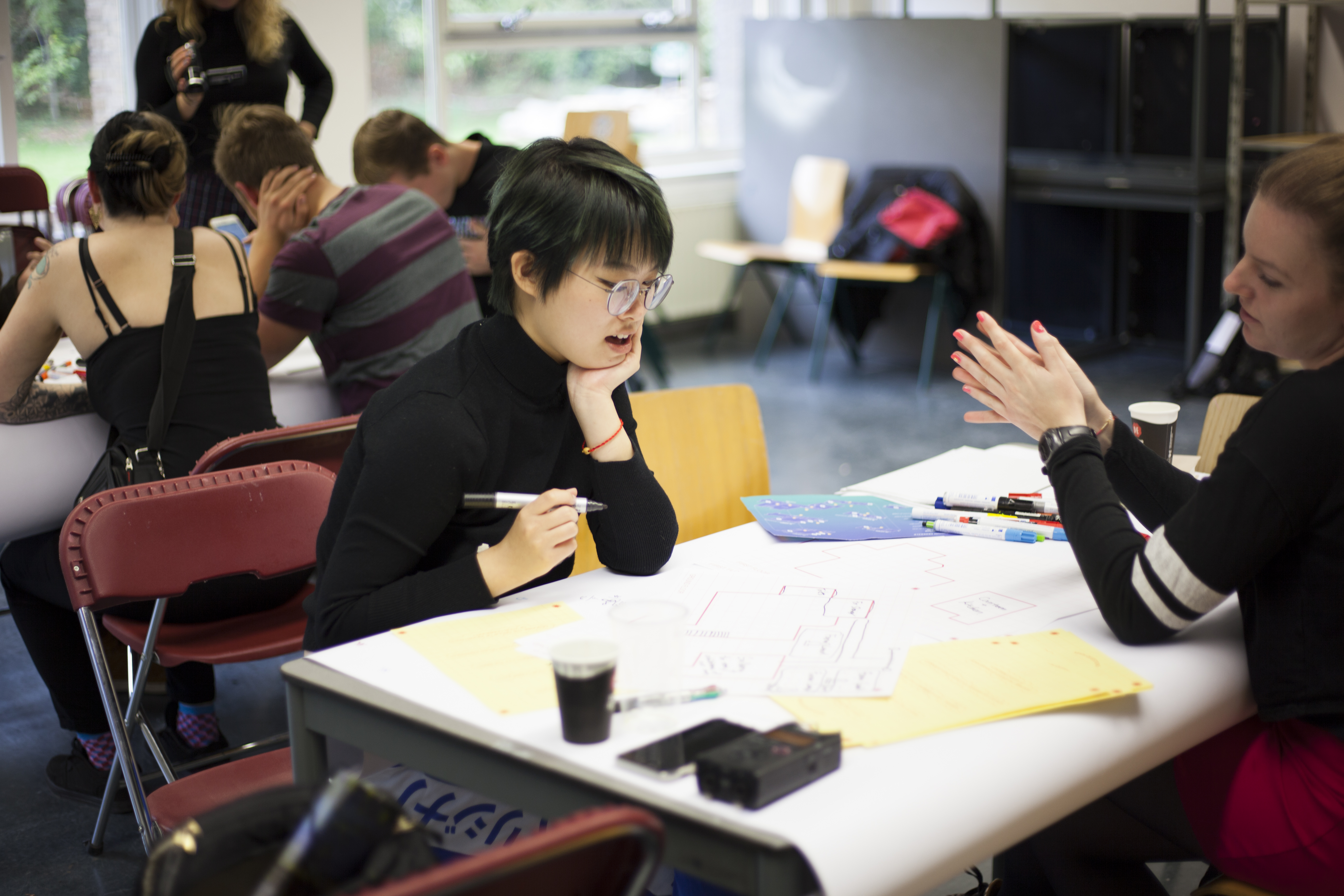 La seconda parte è stata organizzata come un piccolo gioco per permettere agli studenti di immaginare la propria living community. Abbiamo diviso il gruppo in due squadre diverse, ognuna con uno scenario diverso che avrebbe dato l'inizio al gioco. Abbiamo fornito ai giocatori un elenco di domande, una linea guida per dare forma all'idea e alla struttura organizzativa della loro casa, e una serie di progetti vuoti da riempire con schizzi di pianificazione spaziale. Per aggiungere un livello di complessità al gioco, abbiamo incluso alcune domande extra a cui rispondere consultando un gigantesco ‘fortune teller’.