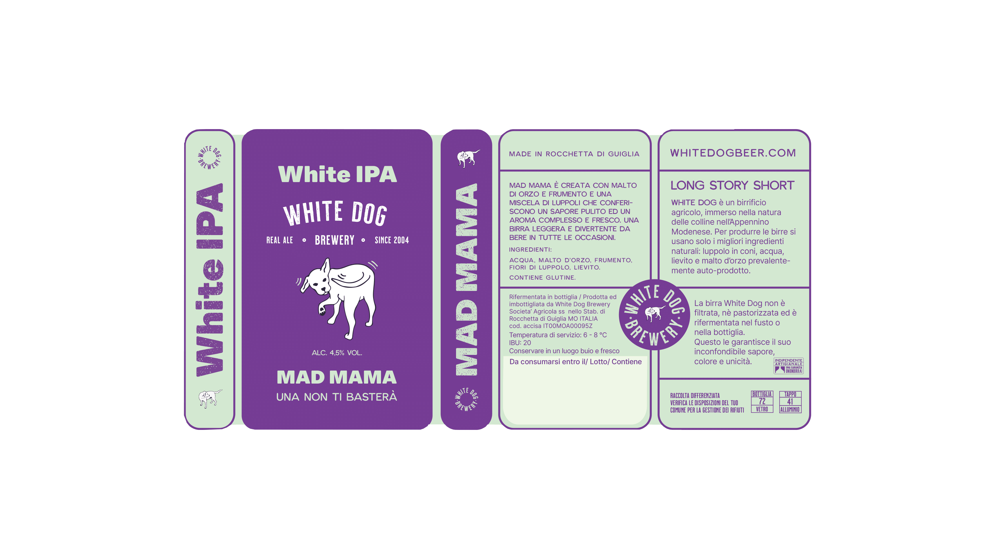 Il simbolo originale di ‘White Dog’ rappresentava la mascotte della famiglia, un labrador bianco stilizzato, che abbiamo mantenuto intatto nel nuovo design. Il nuovo logotipo è una versione più fresca di quello vecchio, che presenta una semplice tipografia stampata.